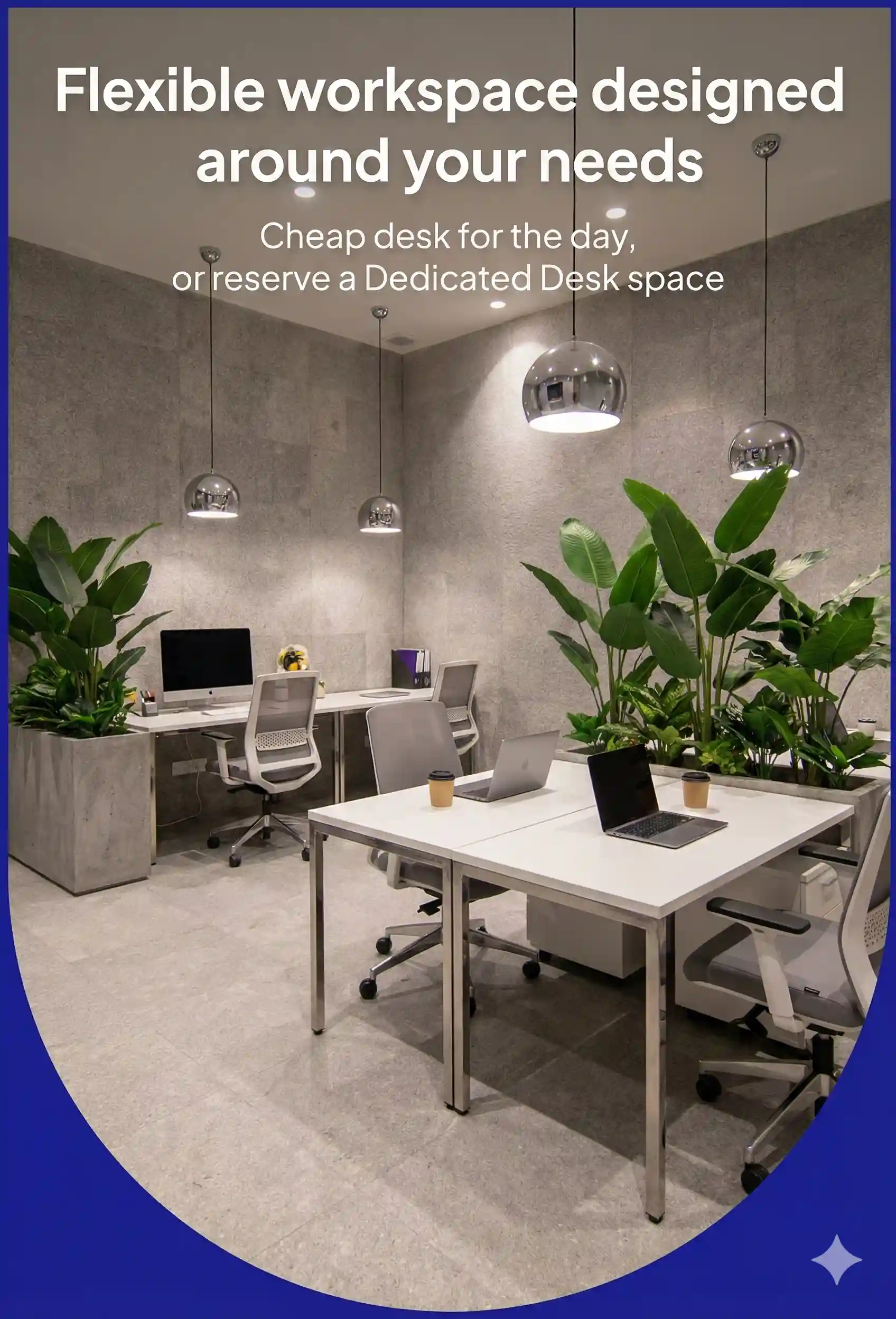 Immediate access to creative, open-layout coworking environments, ensuring a desk is available whenever you require one.Coworking membership